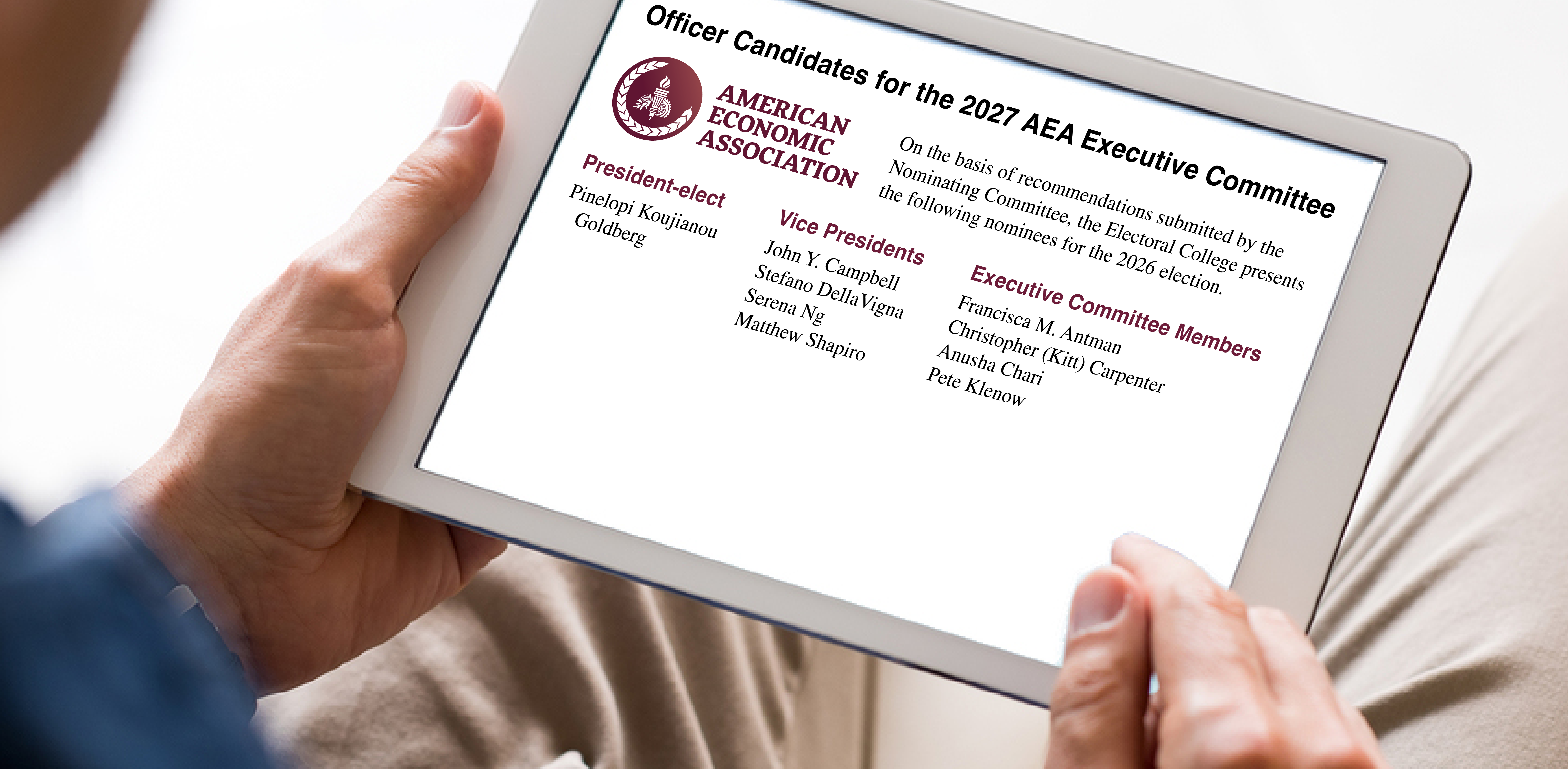 Congratulations to the 2026 John Bates Clark Medalist Ludwig Straub, and to newly elected Distinguished Fellows Donald Andrews, N. Gregory Mankiw, Robert A. Margo, and Marjorie McElroy. View the Press Release for award announcements.