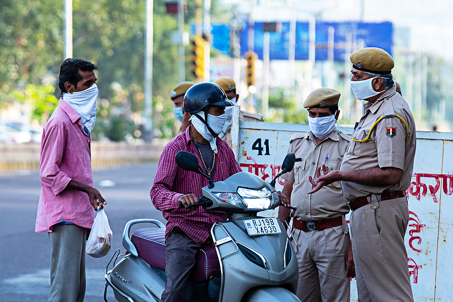 Police in Jodhpur, India, stop citizens during the COVID 19 pandemic lockdown.
